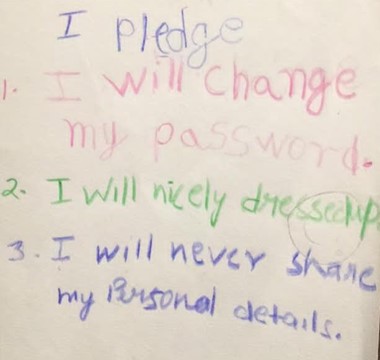 Students shared their understanding by writing a pledge on how to become good digital citizens