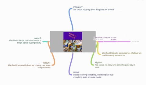 Students demonstrated their understanding of digital footprint and identity by analyzing a picture. They concluded they should not go by face value as people post things which may not be real. They thus needed to be careful with their online conduct and be cautious .