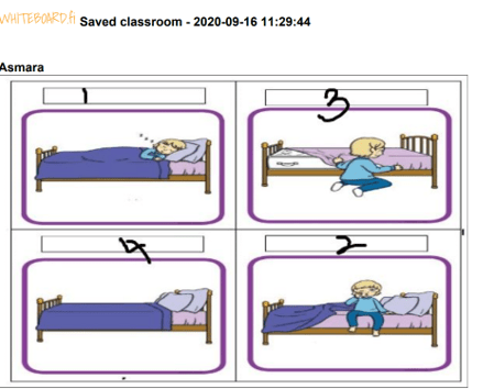 Students identified and sorted the toys according to the age groups by matching the picture with the correct toy using an online Whiteboard. They also used whiteboard to show the sequence of events of a story. The students wrote numbers to indicate the correct order to retell the story. Students also shared their understanding of measurement -heavy-light, tall-short on Whiteboard.fi by using its features to circle the correct option.