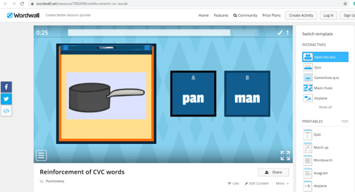 Students shared their understanding of CVC words with an online game where they had to identify the words by looking at pictures.