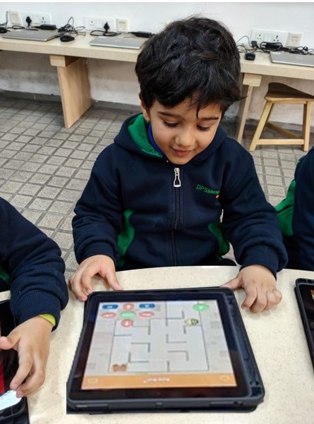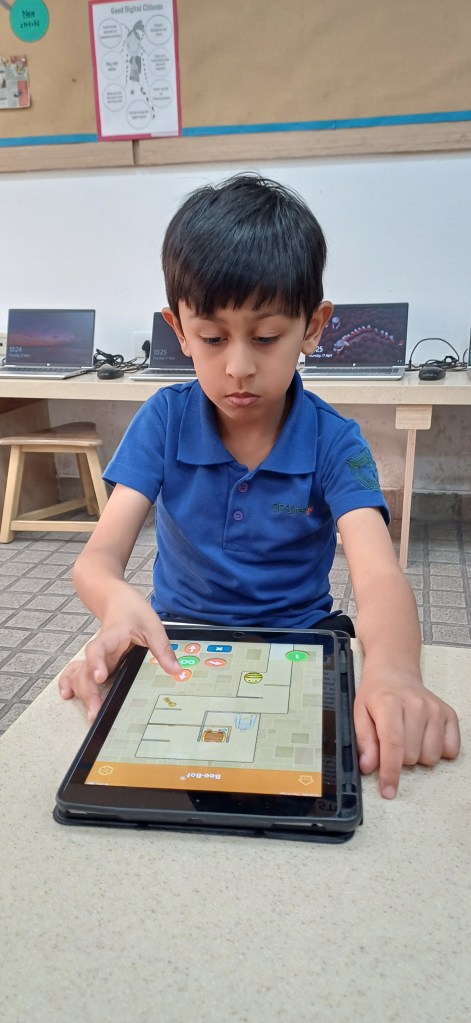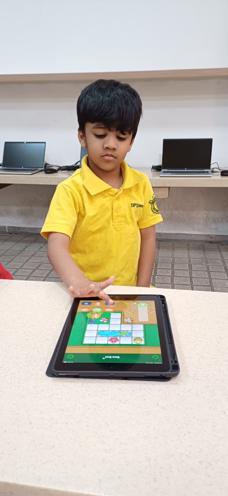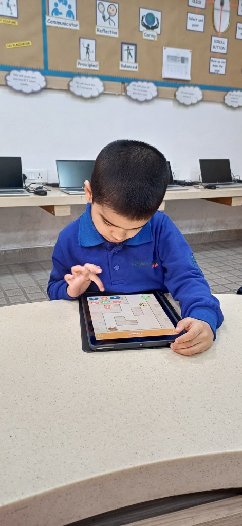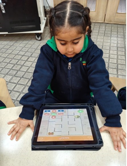 Students were taught coding with the use of floor robot named ‘Bee-Bot’. They learned how to control it by using directional keys, enabling it to move forward, backward, and turn at 90-degree angles to the left and right. Students were given progressively challenging problems as they advanced, which promoted the growth of their computational and critical thinking skills. Through this playful approach, they developed skills of sequencing, estimation, and problem-solving.