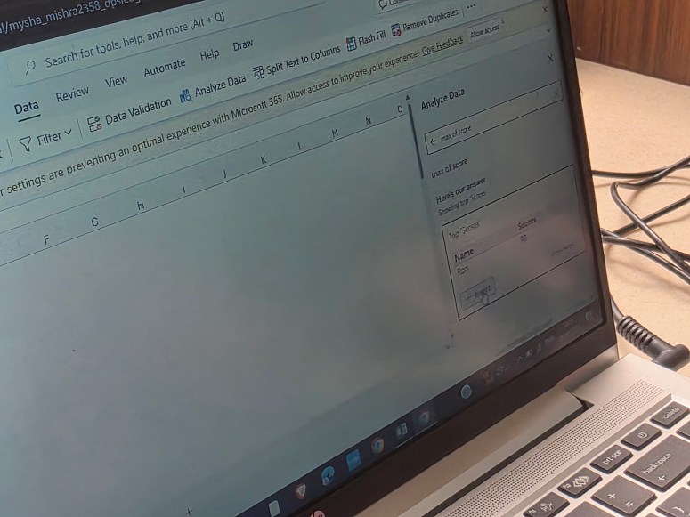 Analyze Data in Excel is a built-in feature that uses AI to automatically provide insights from the spreadsheet data. Grade 5 students used the feature to find the sum, average, max and min values.