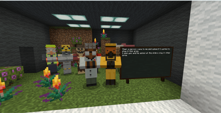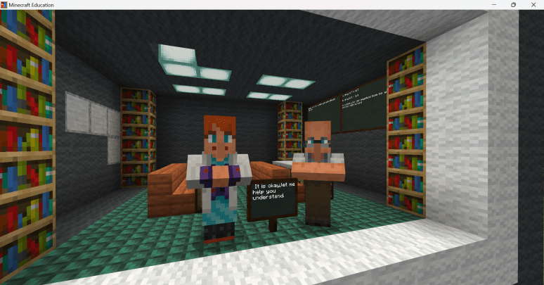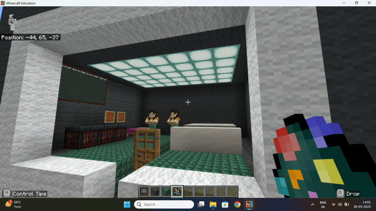 Students explored the virtual world of Minecraft, learning to break and place blocks while mastering mouse and keyboard control. They developed foundational building skills that enhanced their spatial awareness, fine motor skills, and problem-solving abilities. As a creative challenge, students built a world themed around gratitude, using blocks from the inventory and adding signboards to share problems and solutions.