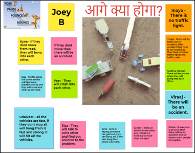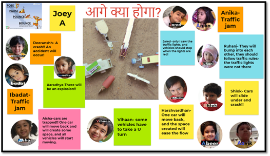 A VTR ‘Pose-Pause-Pounce-Bounce’ was used during Hindi class to foster expression and improved listening skills amongst students. The activity led them to reflect, respond and work on their thinking and social skills to understand diverse perspectives.