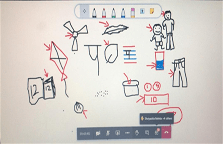 Students used Microsoft whiteboard to illustrate objects beginning with vyanjan ‘प’.