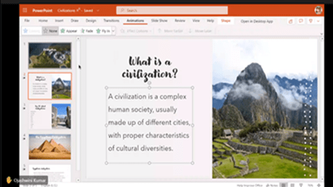 PowerPoint software was used by students for integration with unit on ‘Civilizations’. This helped fourth graders to research and create an appealing presentation on the topic.
