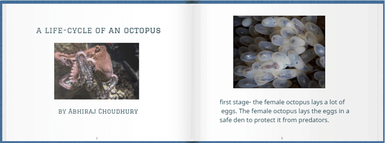 Students showcased their understanding of various life cycles and expressed their creativity using a digital storytelling application StoryJumper. They illustrated their book using photos and handmade artwork, inserted voice, background music with sound effects.