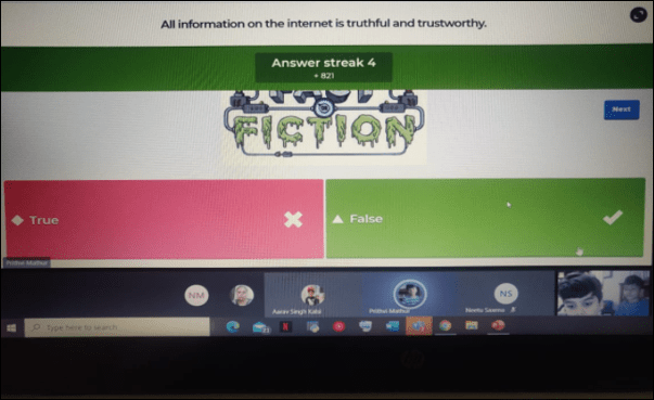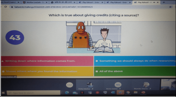 Students participated in an online word-wall game to enhance their thinking skills and to recapitulate names of colours in Hindi.