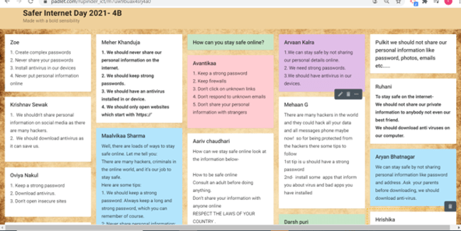 Students from Grade 1-5 enthusiastically and meaningfully contributed during the class discussion and activities to mark the day. The need to reimagine the future with safety in mind was the key to understanding online processes.
