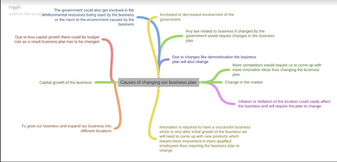 Students of DP 1 created mind maps to highlight the reasons that led to change in a business plan. After creating a visual representation of their thoughts, students brainstormed the situations that led to such changes. Use of Coggle as a tool helped students to reflect and represent their ideas in an organized manner and further develop visible thinking.