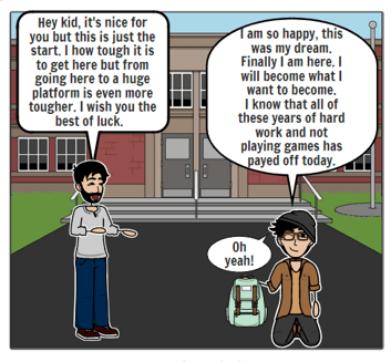 As a part of the unit- Understanding Graphic Novels in MYP 2, educators introduced students to a platform ‘Storyboardthat.com’ to unleash their creative skills. Students designed their own graphic panels using the platform for their formative assessment. This was a perfect tool for students to design their own graphic panels and showcase various conventions of this genre. Students created panels that captured either a significant moment in their lives or how they see themselves in the future.