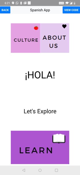 Anandi Nambiar created a Spanish language app targeting tourists. The app allowed the user to develop a better understanding of Spanish culture and Spanish the language. Included in the app was a Anandi Nambiar created a Spanish language app targeting tourists. The app allowed the user to develop a better understanding of Spanish culture and their language. Included in the app was a variety of elements such as a page on culture, a feedback form, common phrases, location specific phrases, introductory phrases and a translator which only translated English to Spanish as English speakers visiting Spain or a Spanish speaking country were the target with the specific client being a frequent traveller.
